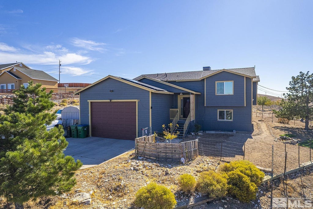 Split level home features a great room with kitchen and family room on the upper level completed with the primary bedroom and bathroom along with an additional bedroom and full bathroom. Downstairs you'll discover an additional two bedrooms with one full bathroom and a large rec room, additional family room or game room! Say goodbye to high energy bills with the solar system with battery backup. This home has had major upgrades like the roof and well, but needs some cosmetic repairs., SOLAR battery backup for solar with 3 attached breakers. Well, microwave and water heater are connected incase power goes out. Storage shed, goat shed and chicken coop to convey with property. Stock panels and t-poles that are removable will not convey. Refrigerator and freezer in kitchen do not convey, Washer and dryer are negotiable. Sale is contingent upon Seller finding a suitable next home. The property is being sold AS IS, WHERE IS. There are no warranties, expressed or implied. 2 hour notice required to show, dogs will be kept in the garage please do not enter the garage or let me know ahead of time if your client would like to view garage during the showing.