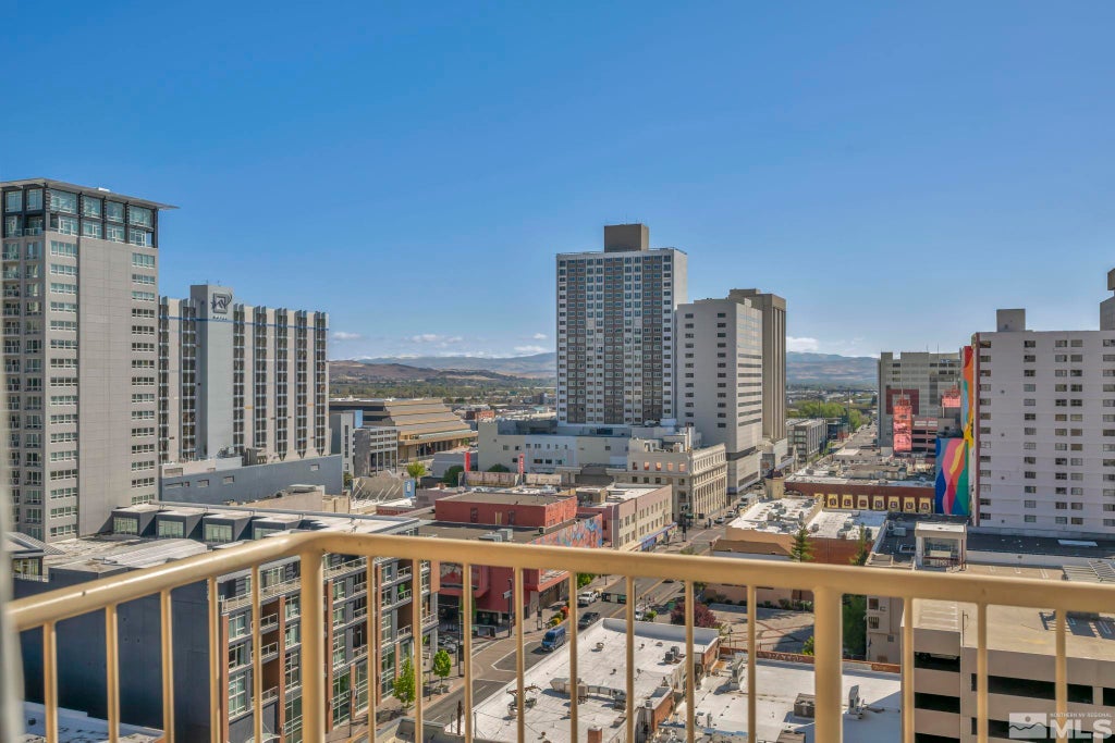 Located on the 12th floor of a high-rise building in downtown Reno, this 2-bedroom, 2.5-bathroom condo offers panoramic city views and a modern interior. The open floor plan features a remodeled kitchen with updated cabinetry, new appliances, and lots of counter space! Both bedrooms include en-suite bathrooms, and offer walk-in closets., A guest half-bath is located off the main living area. Floor-to-ceiling windows provide natural light and expansive urban views. Additional features include in-unit laundry, and secure building access. Close proximity to restaurants, shops, and public transportation.