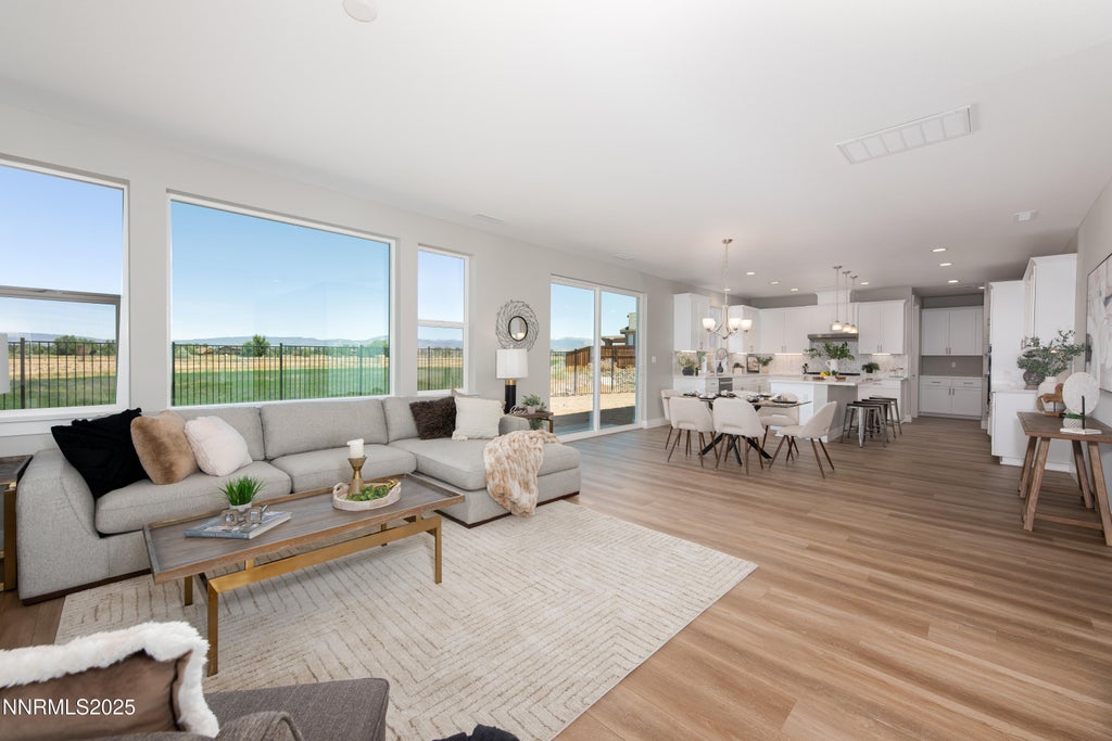 Views, views and more views! Situated on a premium lot, this brand-new home offers breathtaking views of the Sierra Mountains and expansive farmland. With an open-concept layout and no rear neighbors, enjoy both comfort and privacy in a stunning natural setting with no HOA. The main living area features a bright and airy flow between the living room, dining room, and kitchen—perfect for entertaining or everyday living. Over 15k dollars of interior upgrades are included in this home. The kitchen is beautifully appointed with quartz countertops, a stylish tile backsplash, and a spacious walk-in pantry. Additional storage closets are available both downstairs and upstairs. An office area is located at the front of the home on the main floor, adjacent to a full bathroom. Upstairs, you'll find two generously sized guest bedrooms, a full guest bath, a dedicated laundry room, a bonus room and an oversized primary suite with stunning Sierra Mountain views and plenty of room to relax. Step into the serene backyard, complete with RV parking, and enjoy uninterrupted views of surrounding farmland. Located in Gardnerville, this property is close to shopping, healthcare, and local services. South Lake Tahoe is about 25 minutes away, and Carson City is about a 30-minute drive. The area is known for its access to the outdoors, with nearby trails, fishing spots, and mountain views. Gardnerville also offers walkable downtown, community events, and proximity to historic Genoa and the Carson Valley. Pictures of the home may reflect a different property with a similar floorplan, finishes may vary.