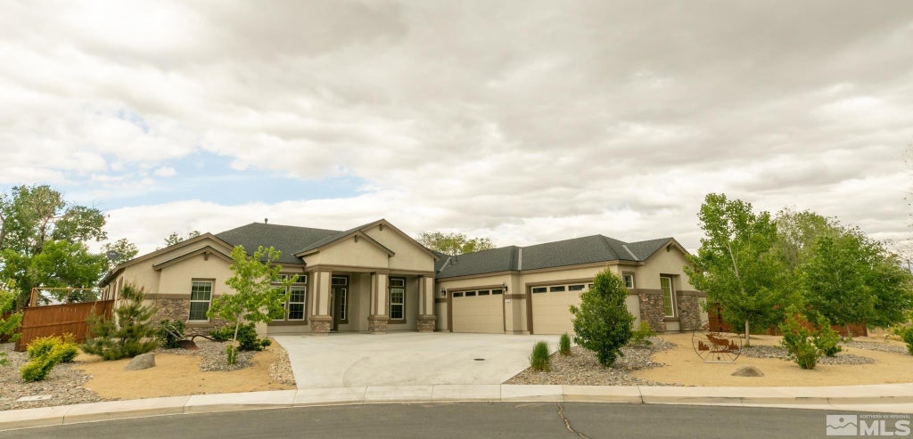 Nestled in the desirable Eagle Meadows subdivision in Fernley, this luxury former model home offers both elegance and convenience—just a short commute to the Tahoe Reno Industrial Center via USA Parkway and I-80. Step inside to soaring 12-foot ceilings in the foyer and main living areas, with 10-foot ceilings throughout the rest of the home. Oversized windows flood the space with natural light. Featuring three en suite bedrooms and modern amenities like dual AC units, two thermostats, and a tankless, on-demand water heater, this home blends comfort with high-end design. Enjoy low-maintenance living with luxury vinyl plank flooring throughout the home, excluding the bedrooms and the living/family rooms. The spacious primary bathroom features a dual shower head setup for a spa-like experience. The kitchen is equipped with two reverse osmosis systems—one at the sink and another connected to the refrigerator for added convenience. Step outside to an oversized covered patio—perfect for relaxing in the shade or entertaining guests. The beautifully landscaped backyard offers added privacy with trees and even includes a sparkling pool—an ideal retreat for warm Nevada days. There's so much more to love about this home. Schedule your private showing today!
