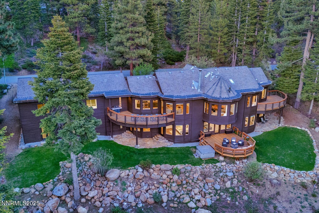 With stunning lake views as your backdrop, this south-facing retreat blends bold design with livable function on Incline's coveted Eastern Slope. Set on a private, gently sloping and functional 1-acre lot, the home features 7 en suite bedrooms, 3 half baths, and equipped caretaker's quarters with separate entry. Two primary suites offer spa-like comfort-one with its own sauna. A chef's kitchen opens to light and airy dining and living spaces, complemented by a wine room, gym, bonus room, and generous storage. Creative artisan touches elevate each space. Step onto the sun-soaked deck and into the hot tub for evenings under the stars. A level driveway leads to an oversized 4-car garage. This fully furnished and outfitted turn-key estate is made for mountain living at its best-just minutes from golf, ski resorts, and private beaches.