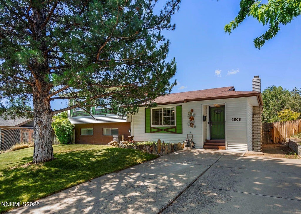 Enjoy the wood-burning fireplace in the winters and A/C in the summers in this charming split-level 4 bedroom home with additional bonus space and large kitchen pantry in Old Northwest Reno! Recent updates include remodeled kitchen and new furnace in 2023. The home's original character remains with the original hardwood flooring still in place in the three upstairs bedrooms, the hallway, and beneath the premium laminate flooring in both the family room and dining room. Take in the views of the mountains in the large backyard with covered deck and additional patio space.