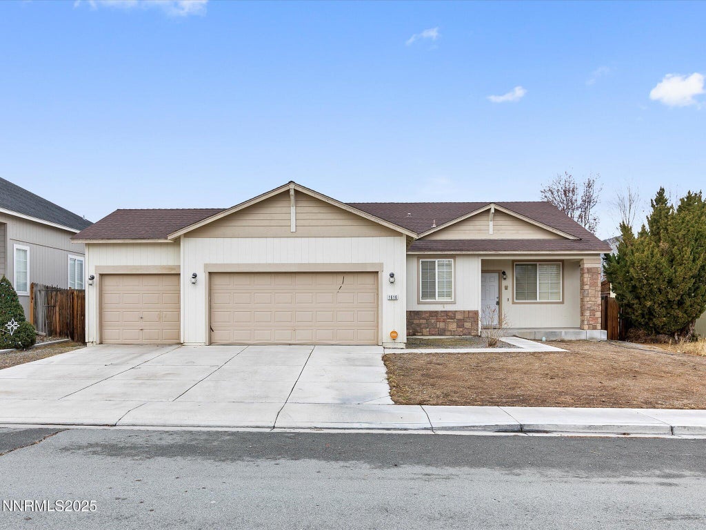 This spacious single-story home in the Ponderosa Subdivision offers a functional layout with 3 bedrooms, a bonus room that could easily be used as a 4th bedroom, and separate living/family rooms! The kitchen is filled with natural light and features a large center island ideal for both cooking and entertaining. The primary suite offers a peaceful retreat with a walk-in closet, updated finishes, and a spa-like bathroom with separate tub and shower. Two additional bedrooms offer generous closet space and quiet comfort. You'll find so much storage among THREE hall closets, and a separate area for the washer and dryer. All appliances come with the home! Step outside to an inviting patio, a covered back porch perfect for relaxing, and a brick fire pit for those cozy Nevada evenings. The 3-car garage provides ample room for storage, vehicles, or hobbies. You also get a storage shed for protecting your favorite toys. Call today to set up a private showing of this turn-key home. Conveniently located near: Fernley Village Marketplace, The Ranch at Desert Lakes Golf Course, Autumn Winds Park, Fernley Swimming Pool, BMX Track, and Wildlife Management Area. Just a short drive to the Tahoe-Reno Industrial Center. *Some photos virtually staged