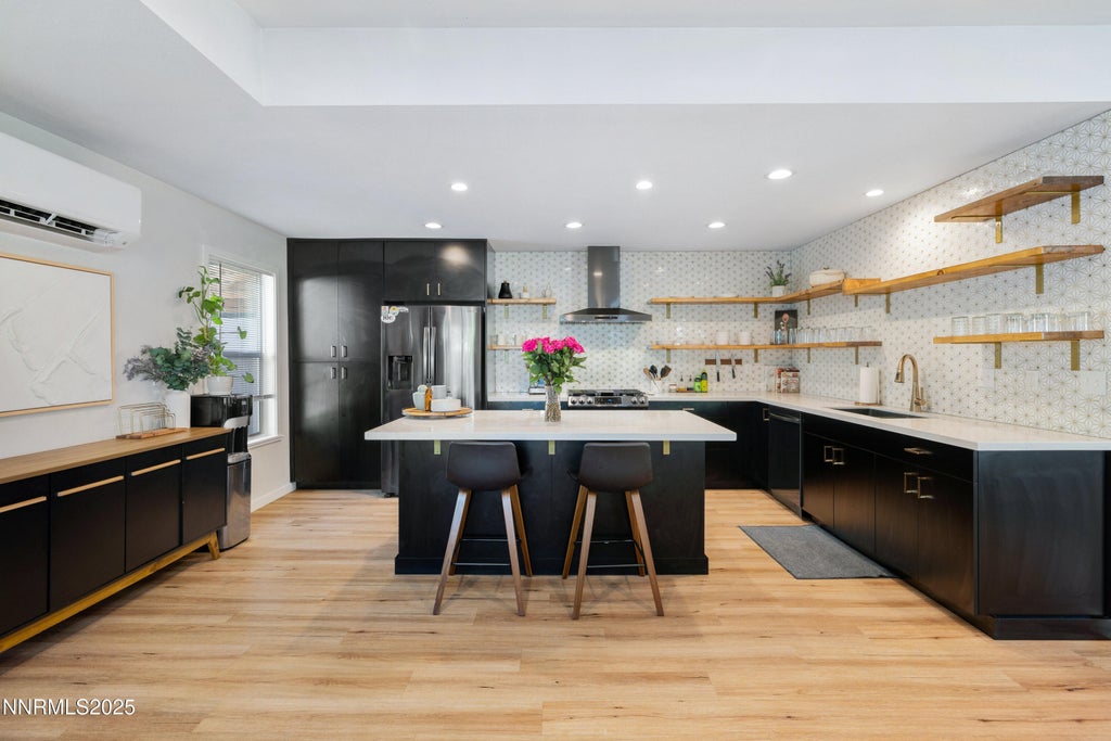 In the vibrant heart of Midtown Reno, this single-level contemporary residence embodies the perfect blend of modern elegance and urban convenience. Designed for effortless living, the open-concept layout seamlessly connects the custom chefs kitchen appointed with premium stainless steel appliances, to the airy living space, unified by warm light oak luxury vinyl plank flooring. Dual primary suites, each with its own ensuite provide refined comfort and privacy, while a chic powder room adds an additional layer of hospitality for guests. Every detail from the curated interior finishes to the thoughtful flow, reflects a commitment to style and quality. Outdoors, a striking Batu wood deck extends the living space, creating an ideal setting for morning rituals or evening gatherings under the Reno sky. Offering not just a home, but a lifestyle immersed in one of the city's most coveted locations, this property is a rare opportunity to live with both sophistication and ease.